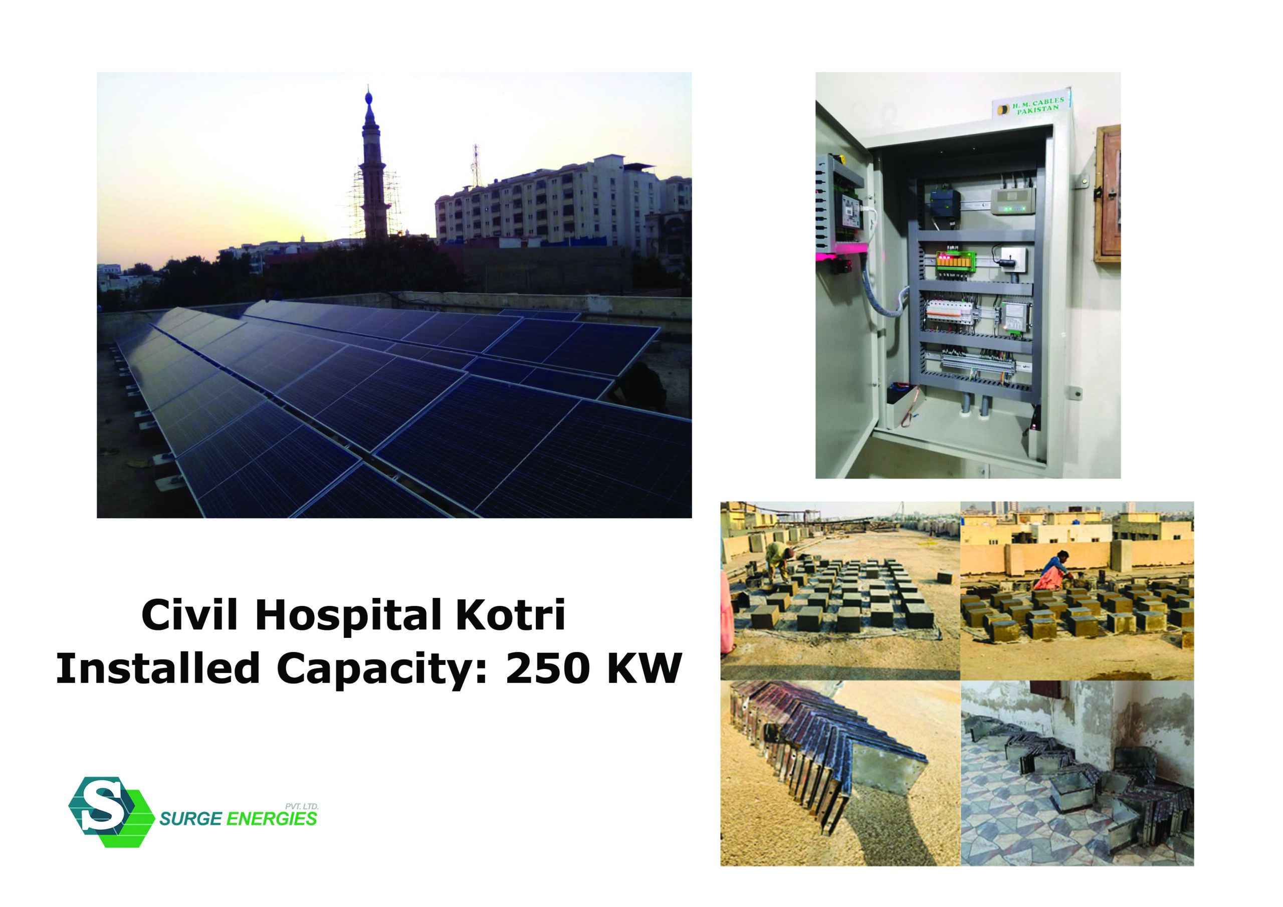 Civil Hospital, Kotri is on board with Surge Energies to solarise their operations. A fully functional system of 250 kW is installed and can fulfil an average consumption of 312,360 kWh units annually by powering it through solar energy! The project is expected to reduce carbon emissions by 285 tons per year.