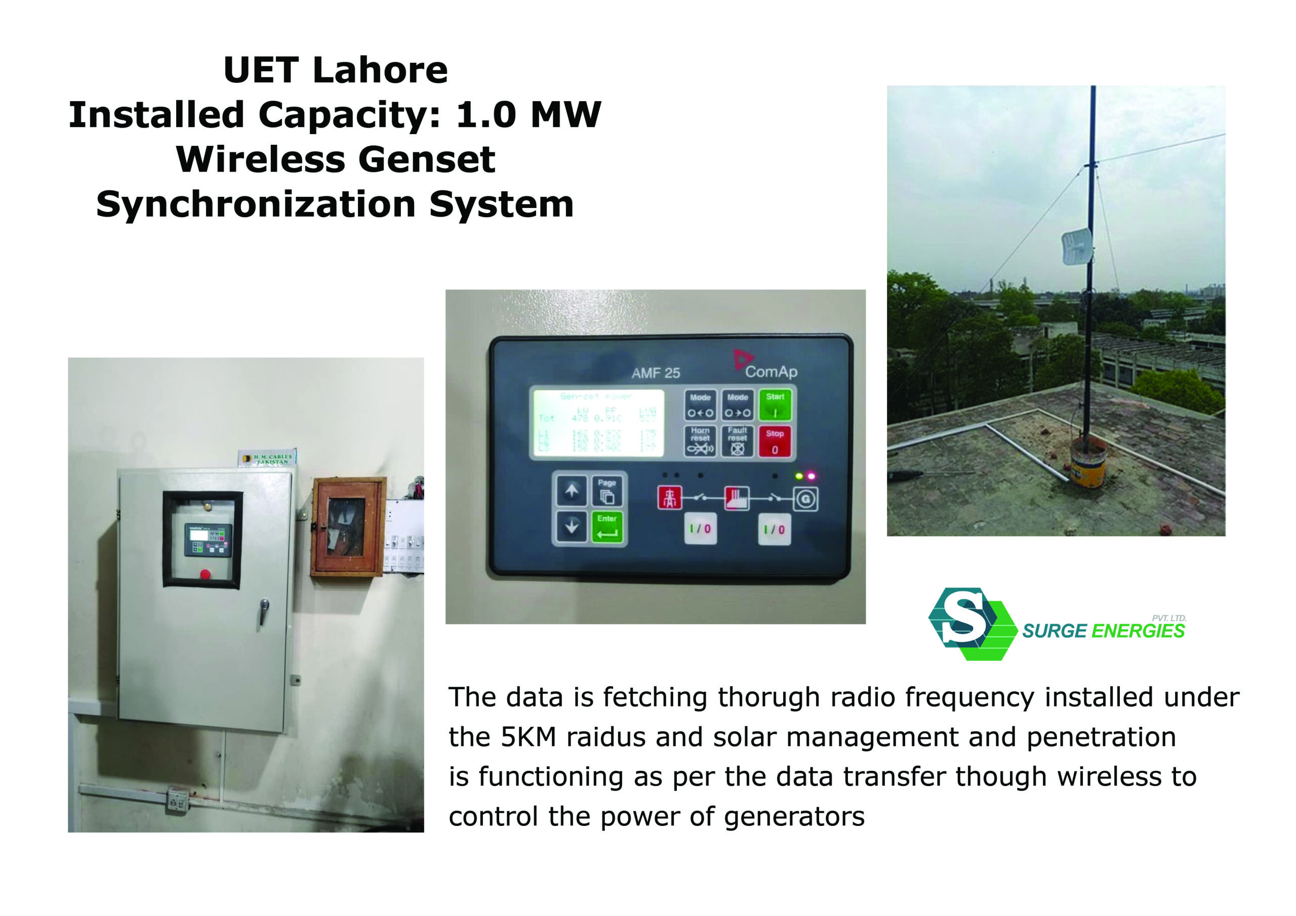 Wireless Genset Synchronization System is installed at UET Lahore by Surge Energies.